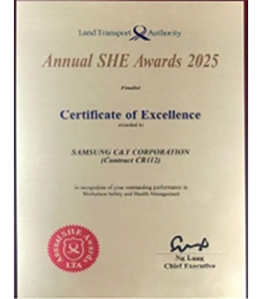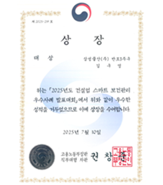 삼성물산 건설부문은 다양한 활동을 인정받아, 국내외 안전보건 환경 분야에서 243건을 수상했습니다. 당사는 여기에 안주하지 않고 지속적인 안전활동과 투자를 통해 ‘안전한 사업’을 위해 최선을 다하겠습니다.